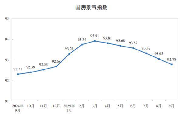 9月份,房地产开发景气指数(简称“国房景气指数”)为92.78。